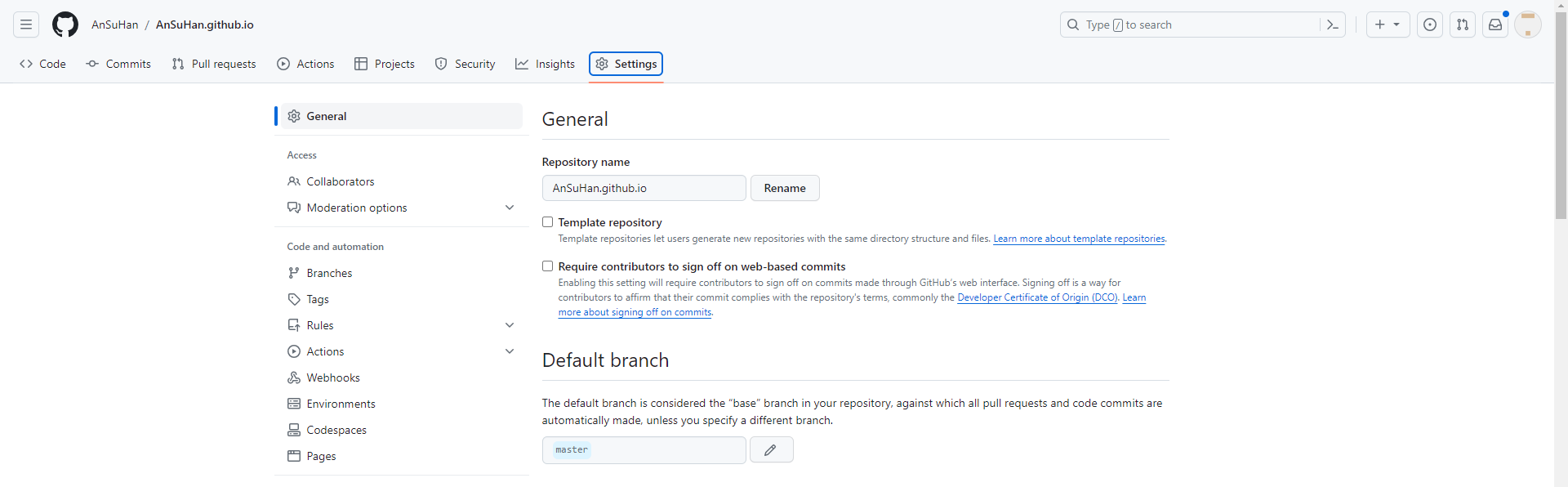 본인의 repository에 복사된 저장소에서 Settings에 들어가 Repository name을